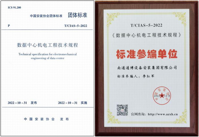 中安協(xié)團(tuán)體標(biāo)準(zhǔn)《數(shù)據(jù)中心機(jī)電工程技術(shù)規(guī)程》(T/CIAS-5-2022)由中建八局擔(dān)任主編單位,我公司作為參編單位參加了編寫工作。該技術(shù)規(guī)程涵蓋:數(shù)據(jù)中心機(jī)電工程設(shè)計深化、采購、施工、試運行等方面的內(nèi)容。為數(shù)據(jù)中心機(jī)電工程的現(xiàn)場施工,提供了有效的指導(dǎo)作用。